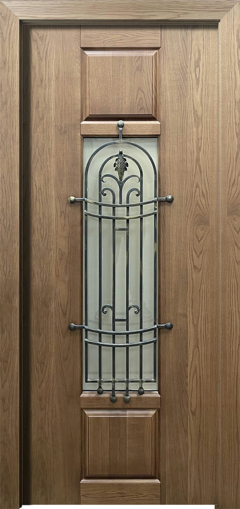 Глухие модели украшаются коваными элементами, наложенными на поверхность полотна и выполняющими исключительно декоративные функции.