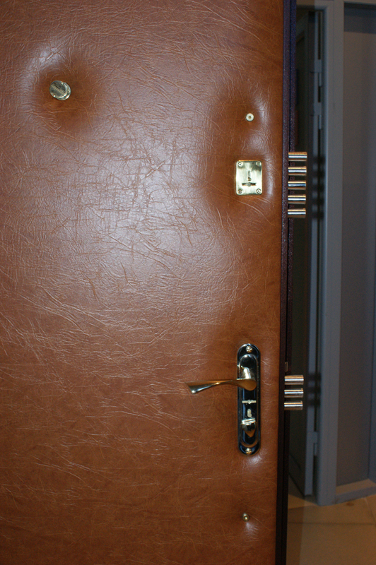 Впрочем, если такой же слой обшивки находился и на внутренней стороне конструкции, то качество звукоизоляции становилось довольно сносным. Да и внешний вид изделия, оформленного искусственной кожей приятного цвета, выглядел весьма респектабельно, особенно если сравнивать с обшарпанными деревянными дверями у соседей по лестничной клетке.